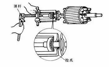 頂拔器俗稱拉具,分為雙爪和三爪兩種,是拆卸皮帶輪和軸承等的專用工具。頂拔器形狀和使用方法如下圖。使用時(shí)各爪與中心絲桿應(yīng)保持等距離。