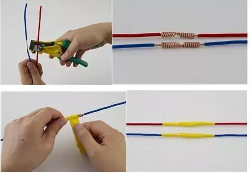 最后一種既簡單又方便還不需要用到任何輔助工具的接線方法,那就是螺線法。這種方法很簡單,也非常好操作。我們只要把其中一根電線纏繞在另外一根電線上,再把這根電線的一頭彎過來扣在這根電線上就可以了,這個(gè)連接電線的方法很實(shí)用,也很牢固,即使以后使用50年,不擔(dān)心電路、漏電的問題。