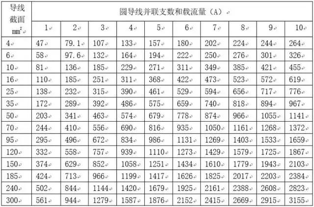 此表就是多芯電線的載流量與單根芯線載流量之間的關(guān)系。