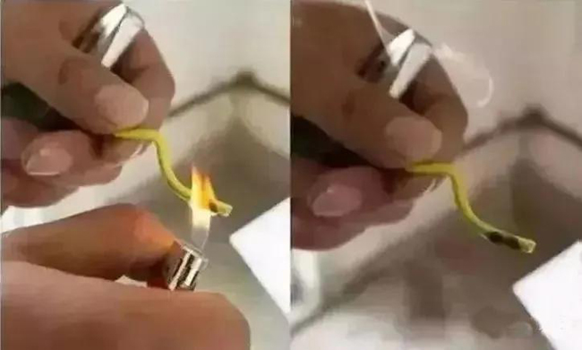 劣質(zhì)電線用火燒會(huì)迅速燃燒,有明火并冒出濃煙。而質(zhì)量好的正品電線燃燒慢,有少量煙或無煙,無明火。