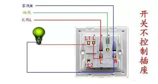 一開五孔:開關即控制插座也控制燈,零線進插座的N,同時并聯(lián)一根零線去燈上面,讓燈和插座同時得到一個零線。
