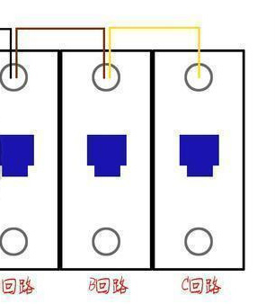 這里A,B,C三個回路的斷路器,都需要從主開關取進線。于是就從主開關的負載端引出三根電線——這是常規(guī)接法。