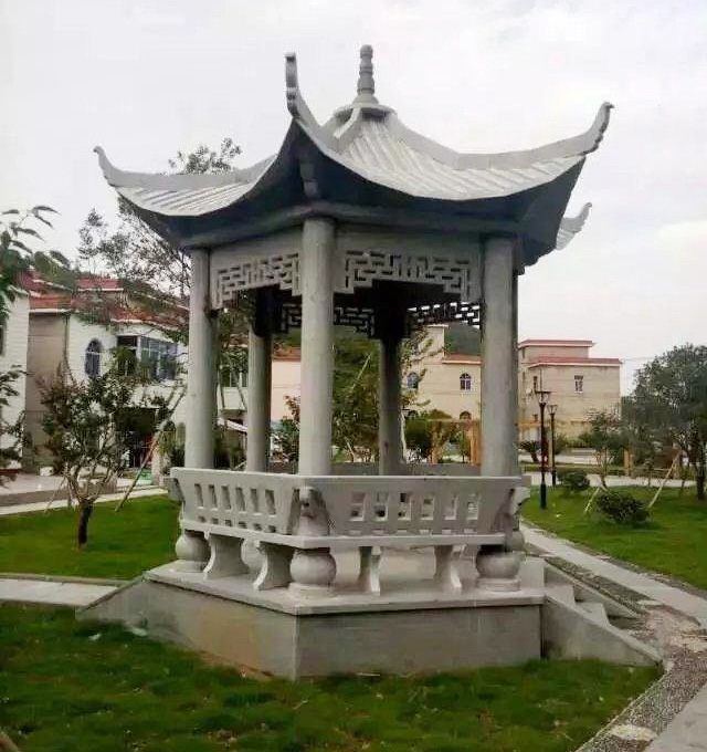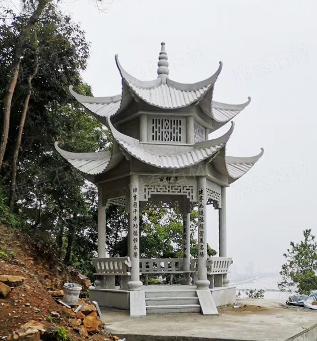 然而,有些石涼亭,為了追求錯(cuò)彩鏤金、精細(xì)華麗的效果,仍然以石仿木雕刻斗拱、掛落,屋頂用石板做成歇山、方攢尖和六角攢尖等等。南方的一些石涼亭還做成重檐,甚至達(dá)到四層重檐,鏤刻精致,富有江南輕巧而不重的特點(diǎn)。