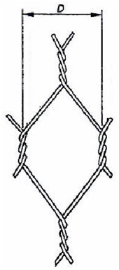 網(wǎng)孔尺寸:測量10個以上網(wǎng)孔的雙絞合間垂直距離的平均值(見圖1)。