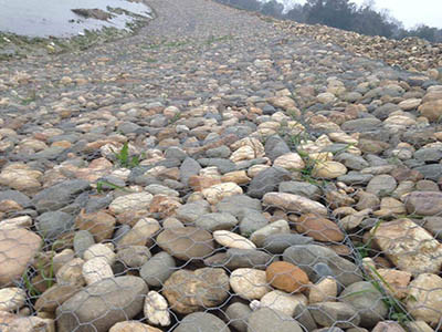 鉛絲籠是選用鍍鋅絲、包塑絲或5%鋁鋅合金鋼絲為材料,再以機(jī)械編織扭轉(zhuǎn)成六角形網(wǎng)目,按描繪需求把網(wǎng)片裁剪、組裝成蜂巢格網(wǎng)箱體,箱體內(nèi)填滿塊石等填充資料后,用作堤防、河邊、路基的防護(hù)工程的石籠產(chǎn)品。