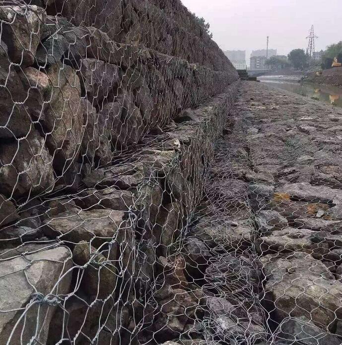 固濱籠是一種應(yīng)用于水利工程治理的建筑材料。它選用低碳鋼的盤(pán)條進(jìn)行拉拔,形成直徑2.0mm-4.0mm的低碳鋼絲,為了增加防止其生銹,在其表面還要進(jìn)行鍍鋅、覆塑等防腐處理。處理完成后的鋼絲經(jīng)過(guò)特殊的重型六角網(wǎng)機(jī)進(jìn)行網(wǎng)面編織,完成后,再由自動(dòng)化的流水線進(jìn)行裁剪與翻邊處理。接下來(lái)的環(huán)節(jié)就是由工人進(jìn)行網(wǎng)箱的初步組裝和打包。