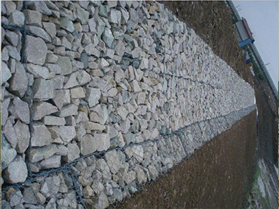 固濱籠具有固堤防沖刷的作用, 固濱籠工藝是指根據(jù)工程設計要求,將特種鋼絲由專用機械編織成雙絞、蜂窩網(wǎng)格,切割、設計、組裝成籠,裝入石塊等填料,連接成一體的結(jié)構(gòu),用于防范和路基保護工程。