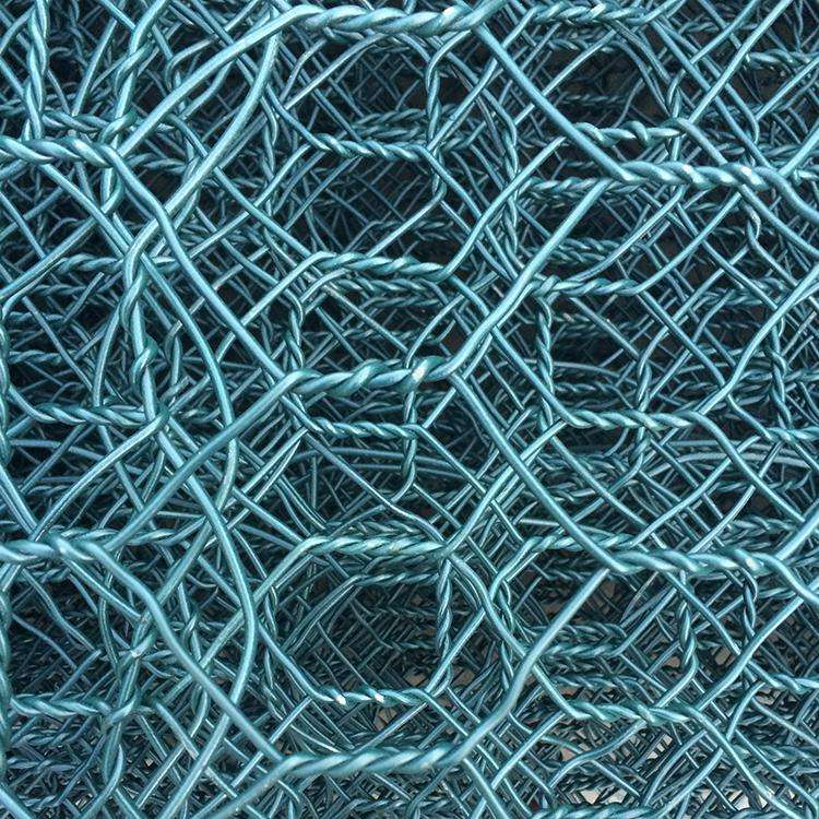 綠色石籠網(wǎng)由高耐腐蝕、高強(qiáng)度、高延展性的低碳鋼絲或PVC涂層鋼絲經(jīng)機(jī)械編織而成。根據(jù)ASTM A 975和EN10223標(biāo)準(zhǔn),所用低碳鋼絲的直徑根據(jù)工程設(shè)計(jì)要求而變化。一般在2.0-4.0mm之間,鋼絲抗拉強(qiáng)度不低于38kg/m2,金屬鍍層重量一般高于245g/m2,石籠網(wǎng)邊緣線直徑一般大于網(wǎng)絲。雙股鋼絲絞合部分的長(zhǎng)度不得小于50mm,以確保絞合鋼絲的金屬涂層和PVC涂層不受損壞。
