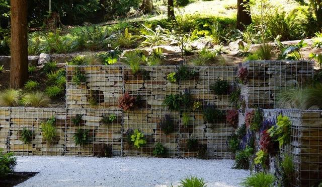 景觀石籠圍墻起初填充物為石塊,所以有石籠這個叫法,但是,隨著人們的應(yīng)用,填充材料也就不再拘泥于石頭了,而擴(kuò)展到木頭、堅果等元素。這大大豐富了人們的感官,使石籠擋墻更具可觀賞性。為了進(jìn)一步增強人們的感官,通常在石籠圍墻頂部、外側(cè)或者內(nèi)部點綴花草等造型。