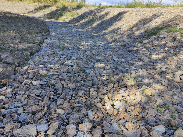 堤坡石籠網(wǎng)箱結(jié)構(gòu)的主要原材料就是鋼絲,分為網(wǎng)面鋼絲、邊端鋼絲和綁扎鋼絲(有時(shí)使用C型扣)。邊端鋼絲通常要大于網(wǎng)面鋼絲,起到加強(qiáng)網(wǎng)面結(jié)構(gòu)作用,而綁扎鋼絲則通常小于或等于網(wǎng)面鋼絲,用于聯(lián)結(jié)網(wǎng)箱。鋼絲的抗拉強(qiáng)度、延伸率、鍍層鋅鋁含量、鋼絲直徑等都是影響石籠網(wǎng)箱質(zhì)量的重要參數(shù),由此看來,鋼絲是影響價(jià)格的主要因素。
