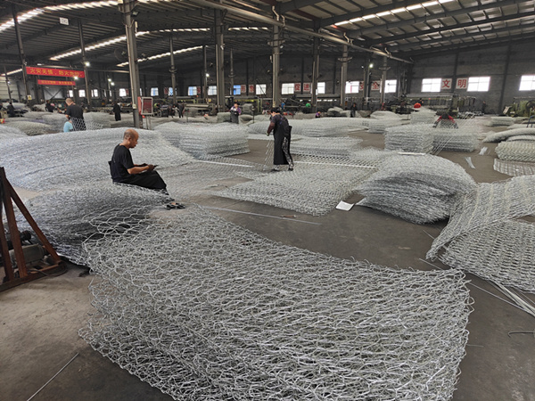 格賓石籠網(wǎng)是水利工程中使用的一種生態(tài)格網(wǎng),把格賓石籠網(wǎng)制作成墊狀結(jié)構(gòu)應(yīng)用于邊坡防護(hù)的這種結(jié)構(gòu)被稱為格賓石籠護(hù)坡。格賓石籠網(wǎng)是一種由高耐腐蝕性的原材料鋼絲編制形成的,被制成墊狀結(jié)構(gòu)后進(jìn)行貼坡擺放,然后再通過(guò)填石進(jìn)行充實(shí)加固。格賓石籠網(wǎng)護(hù)坡施工要求包括這樣幾項(xiàng)內(nèi)容:材料要求、網(wǎng)墊制作要求、網(wǎng)墊安裝要求、填充料施工要求,如下: