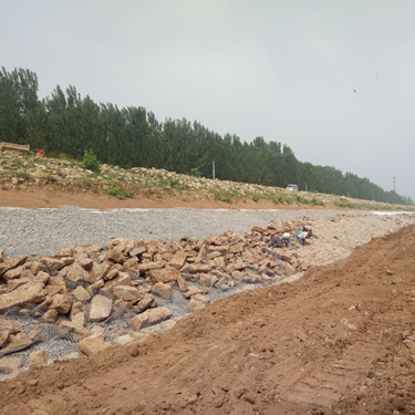 4.格賓石籠網(wǎng)筑堤或擋土墻工事:采用鵝卵石、毛石填充的金屬網(wǎng)箱形成的格賓石籠網(wǎng)組合進行堤壩、橋梁等的防護,現(xiàn)在這種應(yīng)用已經(jīng)被大范圍采用。