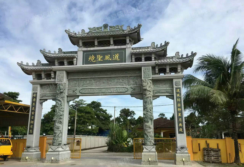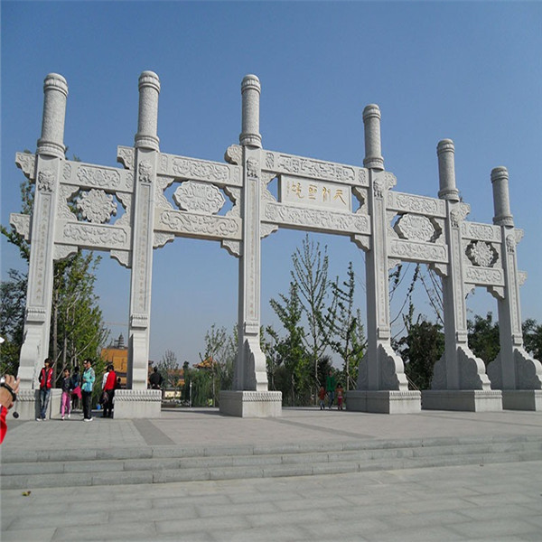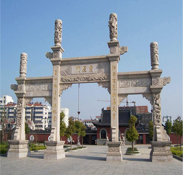 園林景區(qū)入口石牌坊也叫園林景觀門樓,也是園林景觀牌樓的一種,是我們中國傳統(tǒng)的具有特色的一種門形建筑物,一般比較高大,但是占地面積小,被應(yīng)用在很多景區(qū)、村口、言殿、寺廟、陵墓、街道、古鎮(zhèn)等入口,造型獨(dú)特,雕工精湛,結(jié)合精美的圖案和別致的造型,獲得人們的喜歡。就如一座藝術(shù)品,拔地而起,氣勢恢宏,引人注目。