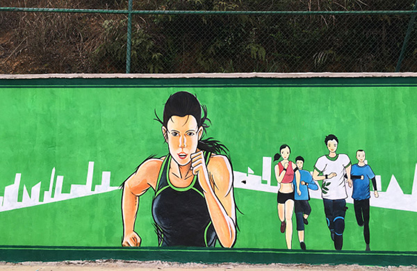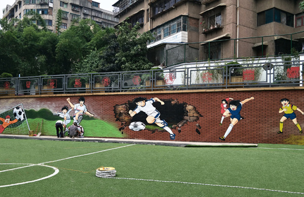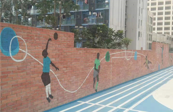 操場上運動風格的文化墻有利于培養(yǎng)學生的集體意識和協(xié)作精神。要相互協(xié)作、團結奮進,要有助于一種友好互助的群體氛圍。