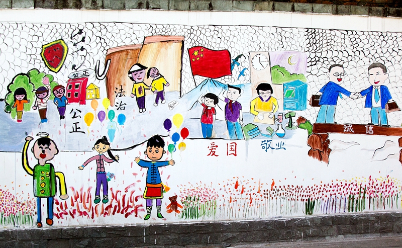 社區(qū)文化墻宣傳內(nèi)容涵蓋文明禮儀、中華美德、文明交通、核心價值觀、科普知識,對當前群眾中普遍存在、習以為常的不文明行為及生活常識,以圖文的形式進行宣傳、規(guī)范與勸導,讓居民在輕松中接受文明教育。