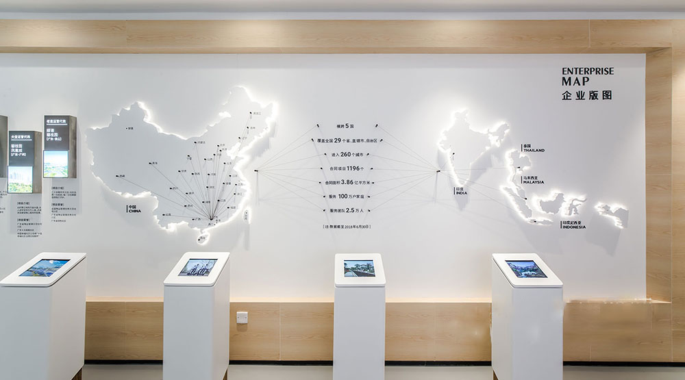 其次,制作材料上要超出常規(guī)。企業(yè)文化墻本身尺寸、空間就非常有限,在有限的框架內(nèi)用非常規(guī)的制作材料,本身就會讓人感到驚奇。很多企業(yè)都非常注重文化墻的科技感和時尚感,而光就是凸顯科技感與時尚感的重要元素。比如,采用PVC板雕刻世界地圖,以發(fā)光的效果展示企業(yè)全球業(yè)務形態(tài),再隨著時間節(jié)點的加入企業(yè)過程,明亮的色彩塊顏色匹配就會讓人眼前一亮。