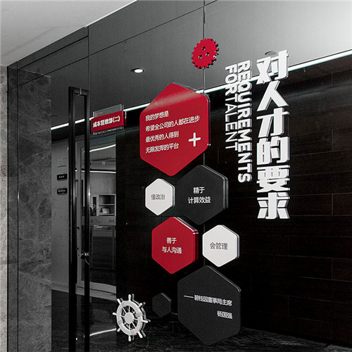 合理布局:企業(yè)文化墻不是獨立存在的,它在辦公區(qū)域中處于一定的位置,因此,我們必須注意把它放在一個合理的位置,有限的空間,優(yōu)化布局,為以后的設計打下基礎。