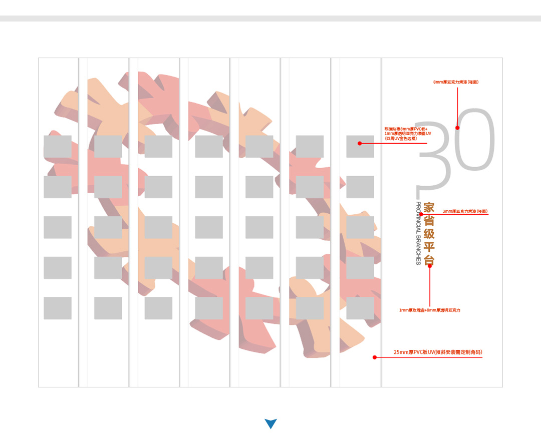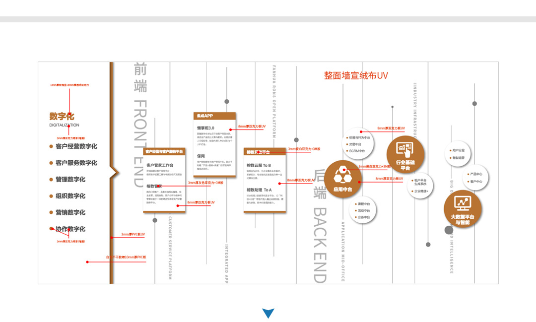 很多企業(yè)在做文化墻時,不是在一面整體的墻面上,很多時候會分成很多個地方、很多個版塊。