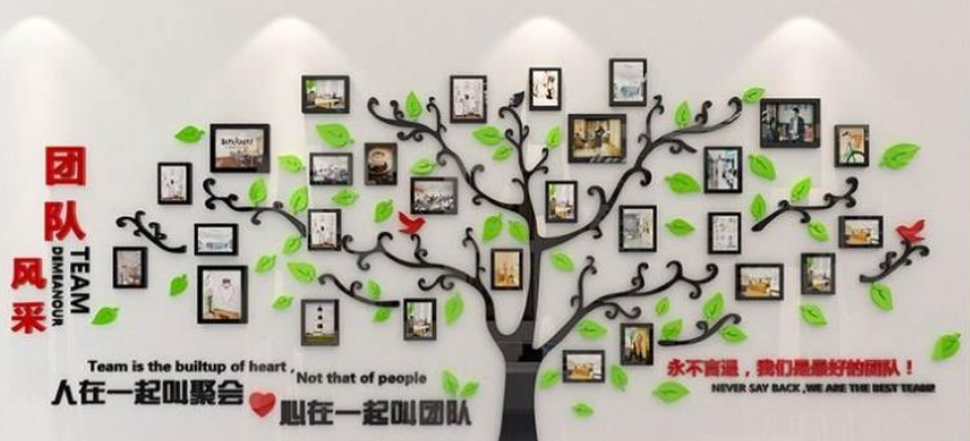 嚴(yán)厲而呆板的企業(yè)文化墻簡單讓職工發(fā)生厭倦和壓力。所以能夠?qū)F(tuán)建時的照片做成活動集錦,輕松又有氛圍,添加企業(yè)凝聚力。