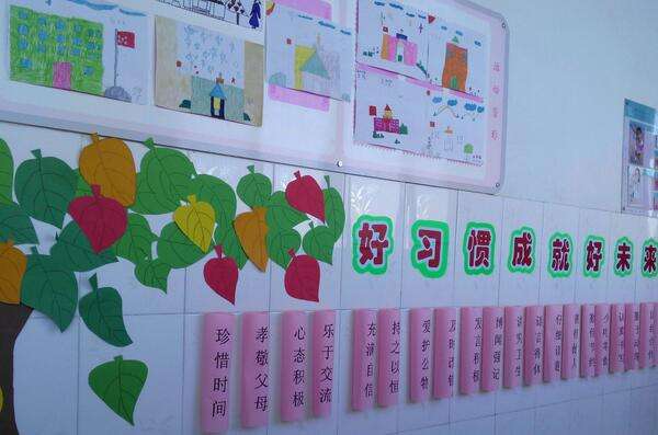 班主任根據(jù)學(xué)校的教育教學(xué)特點和本班級特點,選擇不同的選題內(nèi)容,根據(jù)不同年級段學(xué)生的特點,制作多樣性的文化墻。