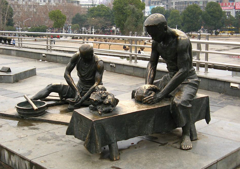 銅雕塑至少已有幾千年歷史,是利用銅材料的延展性興起來得鏨刻工藝,通俗講來又叫敲銅,顧名思義,它就是在銅板上進(jìn)行創(chuàng)作,利用銅板加熱后質(zhì)地變軟,錘打后又恢復(fù)堅(jiān)硬的特性,重復(fù)這一過程,最終制作出藝術(shù)作品或其它生活、工業(yè)用品。鑄銅的工藝要比鍛銅復(fù)雜,藝術(shù)創(chuàng)作的復(fù)原性好,因此適合成為精細(xì)作品的材料,很受藝術(shù)家的喜愛,尤其人物雕塑最為常見。