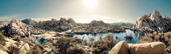 全景攝影是在多樣性中尋求統(tǒng)一,在多種動態(tài)因素之中建立平衡,折衷和妥協(xié)貫穿全景攝影以及后期制作的整個(gè)過程。全景攝影就更為復(fù)雜。在晴好天氣下,戶外全景攝影環(huán)拍的四面和天地上下明暗程度各不相同,反差極大,只能在多個(gè)不同亮度的部分中尋求平衡,在多個(gè)測光數(shù)據(jù)中作出折衷性選擇,讓強(qiáng)光區(qū)的曝光不至于太過,陰影區(qū)的景物也不至于曝光太欠。總之,全景攝影的每一個(gè)環(huán)節(jié)、每一個(gè)步驟都必須從整體的、全局的角度出發(fā)。