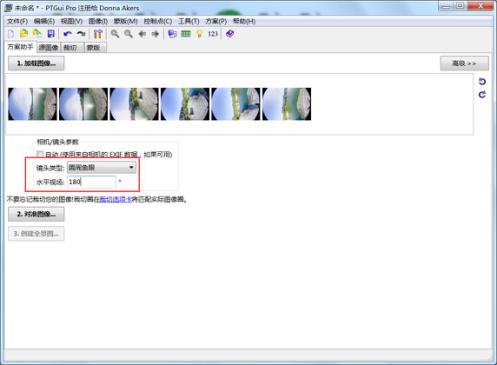 打開PTGUI軟件,點(diǎn)擊加載圖像,導(dǎo)入合成好的魚眼圖,如下圖操作: