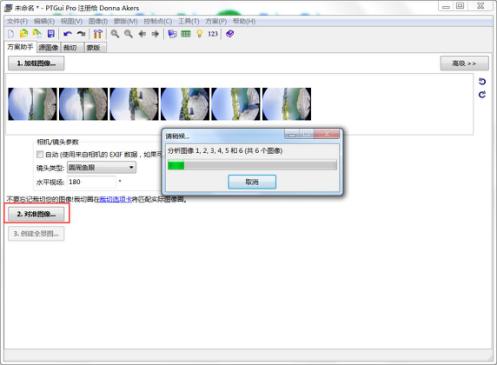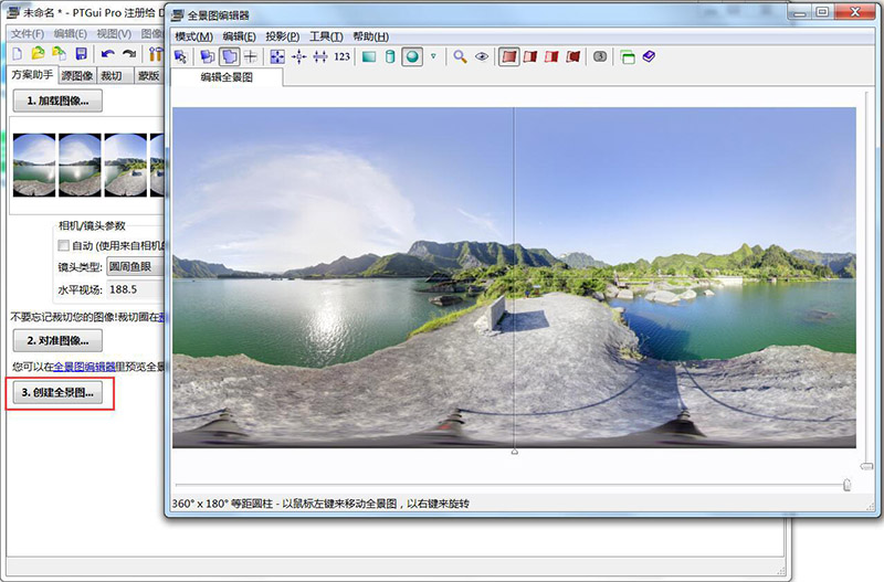 對(duì)準(zhǔn)圖像后點(diǎn)擊“創(chuàng)建全景圖”,如下圖操作: