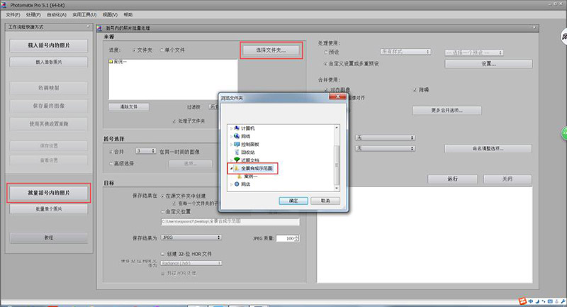 第四步,打開軟件“Photomatix”,導(dǎo)入拍攝好的照片,點(diǎn)擊“批量括號(hào)內(nèi)的照片”,選擇我們拍攝好的魚眼圖文件夾,如下圖操作: