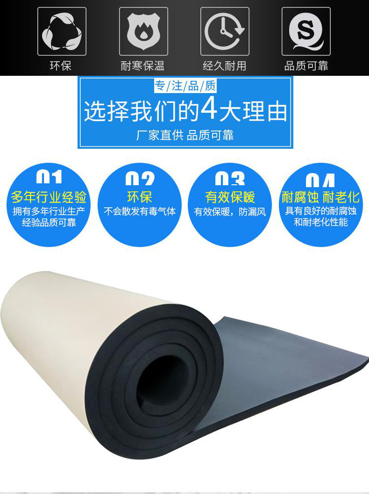 3、專用膠水的自然干化時間為3-10分鐘,時間的長短取決于膠水的等級、大氣的溫度和濕度,且阻燃橡塑板性能好,應(yīng)用廣泛,且橡塑板遵循:環(huán)境溫度越高,相對濕度越大,介質(zhì)溫度越低,橡塑泡沫板管道直徑越大等材料就應(yīng)越厚。