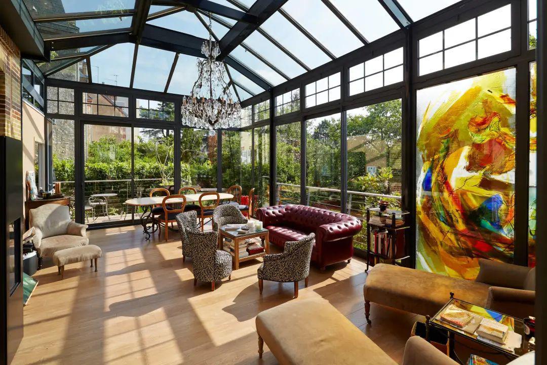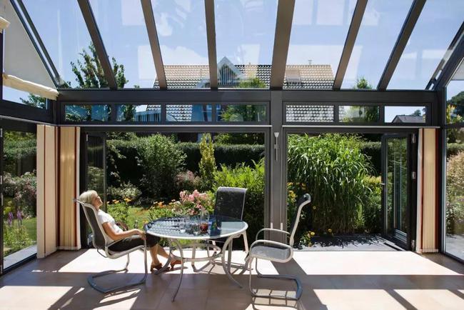 多功能陽光房設(shè)計將將休閑、會客、娛樂、融為─體,可以在多功能陽光房的四周圍種植許多大大小小的綠色植物,打造一片郁蔥之景,花草可以吸收透過玻璃射入的自然光線。想要陽光房中做到冬暖夏涼,窗框的選擇是很重要的要素。而使用鋁合金材質(zhì)做窗框,可以很好的做到保溫隔熱,充惰性氣體的中空鋼化玻璃還能最大程度阻止熱量的外泄。