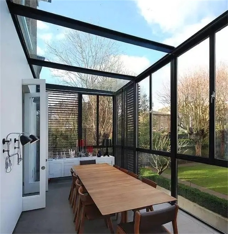 夏天太熱、冬天太冷如果陽光房設計得不好很容易變成一個雞肋的設計。因此我們在設計陽光房過程中需要考慮隔熱和防寒,我們可以選擇成本低的貼膜,它們有效起到保溫、隔熱、節(jié)能防紫外線的效果。但效果肯定是沒有更換玻璃那么好的,但是已經滿足普遍消費者的需求的了,所以貼膜已經足夠。