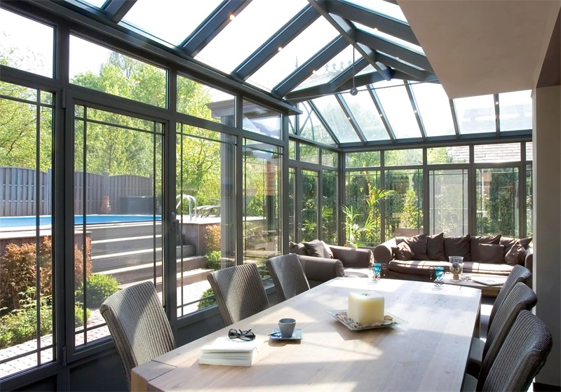 目前常用的骨架材料為鋼材和鋁合金型材,剛結(jié)構(gòu)搭建的陽(yáng)光房骨架結(jié)實(shí)耐用,尤其是在做大型陽(yáng)光房上表現(xiàn)會(huì)相對(duì)出色,但是缺點(diǎn)就要定期保養(yǎng)維護(hù)且容易生銹。而鋁合金材質(zhì)的話就會(huì)更加適合做移動(dòng)陽(yáng)光房,不僅可能滿足伸縮開合的要求,同時(shí)支撐性更好,且不容易生銹,保養(yǎng)起來費(fèi)用便宜且很好操作。