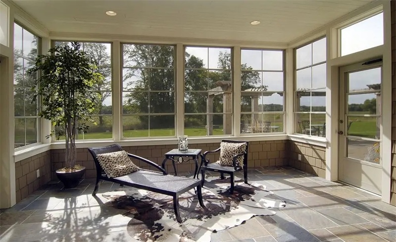 優(yōu)點:普通陽光房其實就是采用鋼或鋁材進(jìn)行焊接搭建而成,所以它適應(yīng)的場景效果會很多。這種類型的門窗造價相對較為便宜。頂面采用夾膠玻璃或陽光版作為頂面材料,擁有良好的擋雨和透光特性。