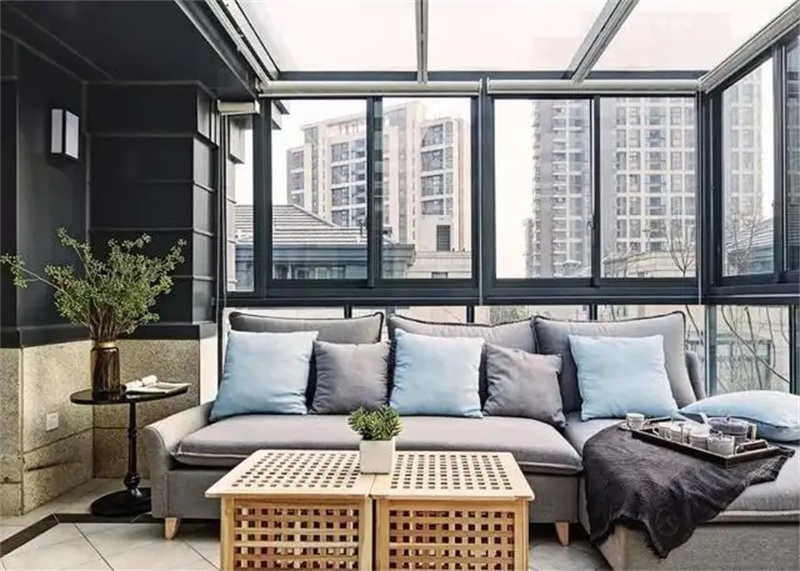 采用隔熱隔音斷橋鋁型材制作,配合low-e中空鋼化玻璃,能有效阻擋室外溫度的入侵和阻擋紫外線及輻射。或者選用內(nèi)置蜂巢簾的中空玻璃,即能隔熱又能遮陽,還可以電動(dòng)遙控,不失為土豪的最佳選擇。陽光房十大品牌,認(rèn)準(zhǔn)成都陽光房。