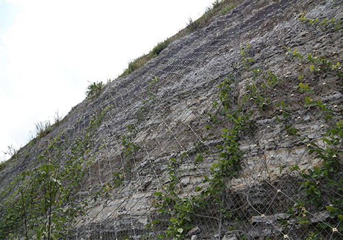 主動防護網是以鋼絲繩網為主的各類柔性網覆蓋包裹在所需防護斜坡或巖石上,