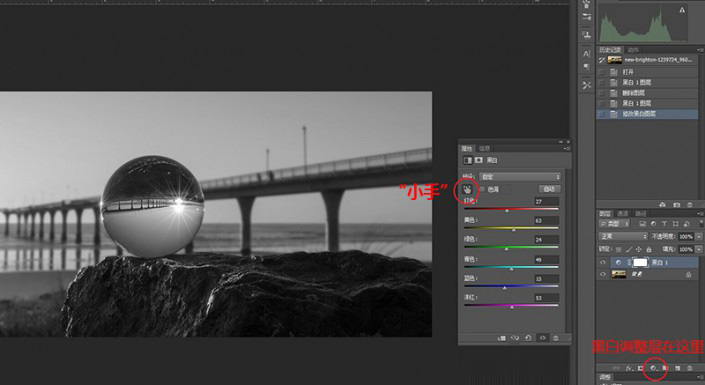 在Photshop里將一張彩色照片轉(zhuǎn)黑白可以是非常簡單(且無聊)的,你只要點擊圖像>調(diào)整>去色,就可以完成。但如果你想讓這張黑白片更上一個層次的話,不妨用一個“黑白調(diào)整層”去調(diào),你可以用6個顏色的滑塊去控制圖像的主要顏色,還可以用那個“小手”工具單擊圖片任何的區(qū)域,進行區(qū)域性的調(diào)整。