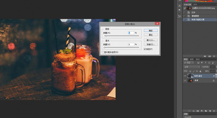 在Photshop里將圖片的暗部細節(jié)還原出來,最好的工具之一“陰影/高光”,想必大家都是知道的。不過,如果你直接在單個圖層上進行調(diào)整的話,可能會破壞細節(jié)。更好的方法是,復(fù)制背景圖層,對著此圖層點擊右鍵,選擇轉(zhuǎn)換為智能對象,然后點擊圖像>調(diào)整>高光>陰影/高光,調(diào)整數(shù)據(jù)去恢復(fù)細節(jié)。