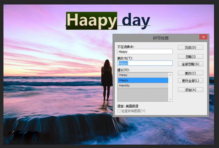 當(dāng)你用Photshop做一些文字排版時,“拼寫檢查”可以幫你快速地找到不正確的詞組并提供正確參考,不過此功能目前只能識別英文。點擊編輯>拼寫檢查就能找到它。做英文排版的同學(xué)還是可以使用的哦。