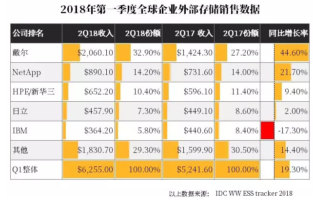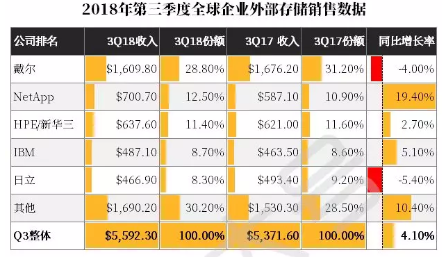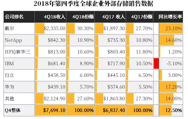 2018全球企業(yè)存儲銷量數(shù)據(jù)