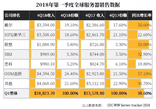 戴爾與HPE/新華三排名比較穩(wěn)定
