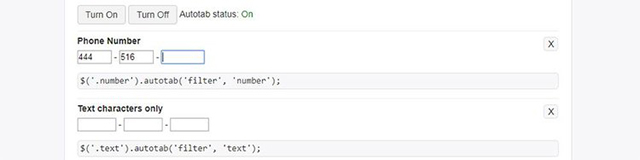 最后,當(dāng)然不是最不重要的是由matthew miller提供的jquery autotab插件。這允許您為任何表單輸入定義一定的長度,因此一旦完成,它將自動(dòng)簽入下一個(gè)表單。它適用于那些需要設(shè)置號(hào)碼的字段,比如電話號(hào)碼或生日。查看現(xiàn)場演示,看看這是如何工作的,如果它有助于擴(kuò)展您的web表單。