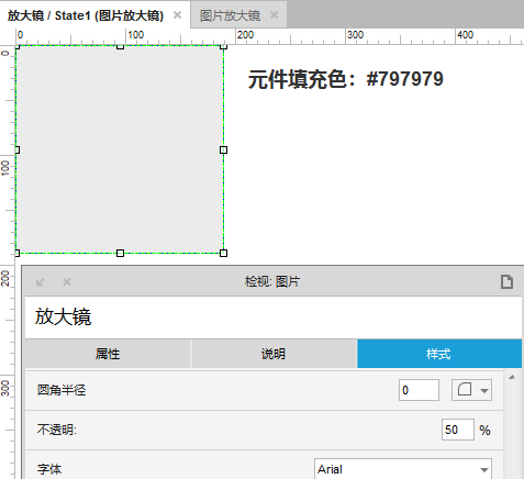 放大鏡:矩形元件,填充顏色,設(shè)置不透明度,然后轉(zhuǎn)換為圖片。