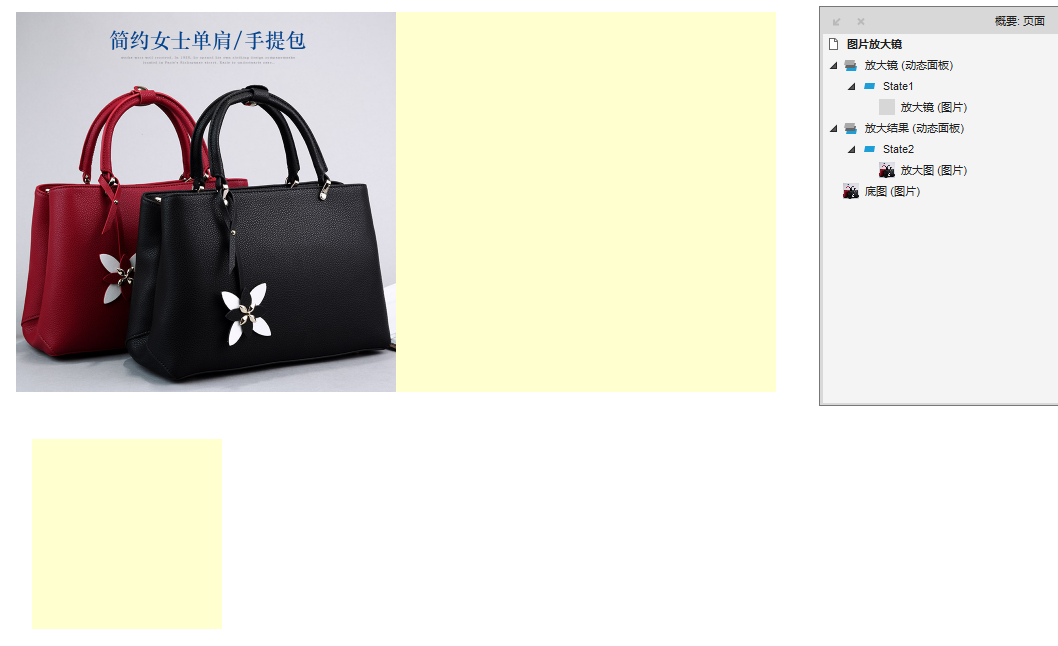 為了加深對動態(tài)面板的理解,所以嘗試了圖片放大鏡實現(xiàn)效果,中間也遇到一些小問題。該練習主要用到元件跟隨鼠標移動、動態(tài)面板。
