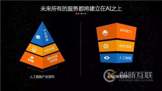 全球數(shù)據(jù)量暴增、神經(jīng)網(wǎng)絡(luò)的重新復(fù)蘇、機(jī)器學(xué)習(xí)技術(shù)的演進(jìn)、計(jì)算能力從5000次/秒突破到 5.59億次/秒,這些都在推動(dòng)ai技術(shù)的突破。就像我們?nèi)粘J褂玫木W(wǎng)絡(luò)、能源等,ai技術(shù)將成為又一項(xiàng)基礎(chǔ)設(shè)施,并逐步滲透至各個(gè)領(lǐng)域。那么企業(yè)提供服務(wù)行為將發(fā)生怎樣的變化?我們認(rèn)為未來(lái)所有的服務(wù)都將建立在ai之上。