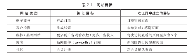 1.網(wǎng)站轉(zhuǎn)化目標和成功衡量指標類型為了幫助你理解網(wǎng)站的高級轉(zhuǎn)化目標,表列出了5種主要網(wǎng)站類型的轉(zhuǎn)化目標示例。這個表格指出如何在分析工具中建立每個目標。