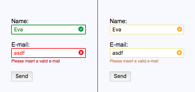 顏色應(yīng)該只是錯(cuò)誤或確認(rèn)信息的補(bǔ)充,但不能成為我們使用的唯一工具。為了確保我們的重要信息能夠觸達(dá)到所有的用戶,我們應(yīng)該要在表單中添加標(biāo)簽或圖標(biāo)來填充正確的信息。