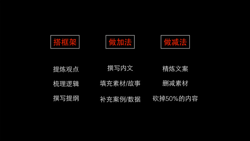 如果是撰寫長文案(軟文、產(chǎn)品說明文案等),可以采取先"做加法",再"做減法"的方法,先寫提綱,然后盡可能全面地填充素材,最后砍掉50%的文案,讓用戶只看到最精煉的部分,提升他們讀完全部文案的信心,也避免受到冗余信息的干擾。
