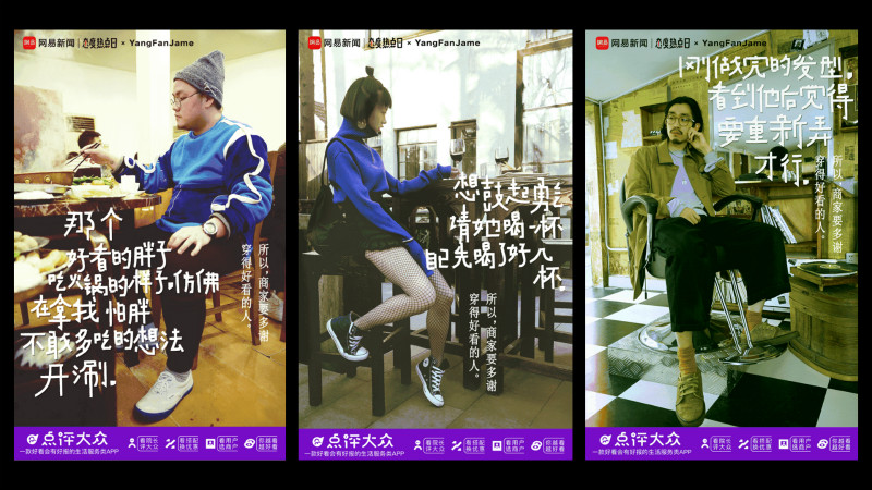 網(wǎng)易新聞近期推出的"點評大眾"APP也使用了場景化的文案。針對這款以時髦為主打的生活服務(wù)類APP,通過文案構(gòu)建起火鍋店、酒吧、理發(fā)店等場景和場景內(nèi)發(fā)生的故事,讓人印象深刻。