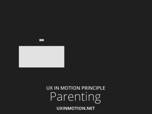在用戶進(jìn)行操作時(shí),有父子關(guān)系的元素幫助用戶更好地理解它們之間的層級(jí)關(guān)系以及帶來更加有理可循的操作反饋。正如上面給出的這張動(dòng)圖,位于下方的方塊的左右運(yùn)動(dòng),而位于上方的方塊跟隨下方方塊進(jìn)行左右運(yùn)動(dòng)并同時(shí)進(jìn)行自己的縮放運(yùn)動(dòng),他們之間構(gòu)成了父子關(guān)系。說得簡(jiǎn)單一點(diǎn),父子關(guān)系就是子元素的某個(gè)屬性的值隨父元素的某個(gè)屬性參數(shù)的值按照一定的比例進(jìn)行變化。